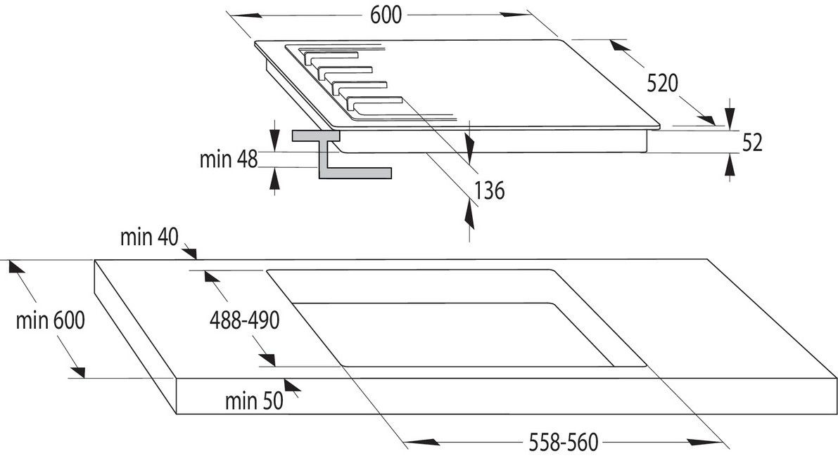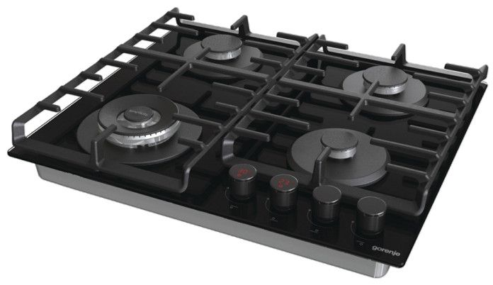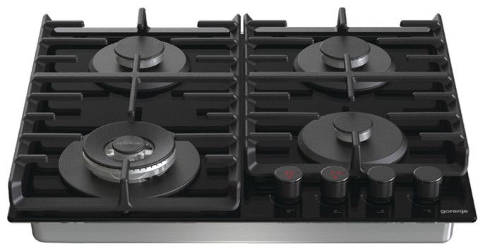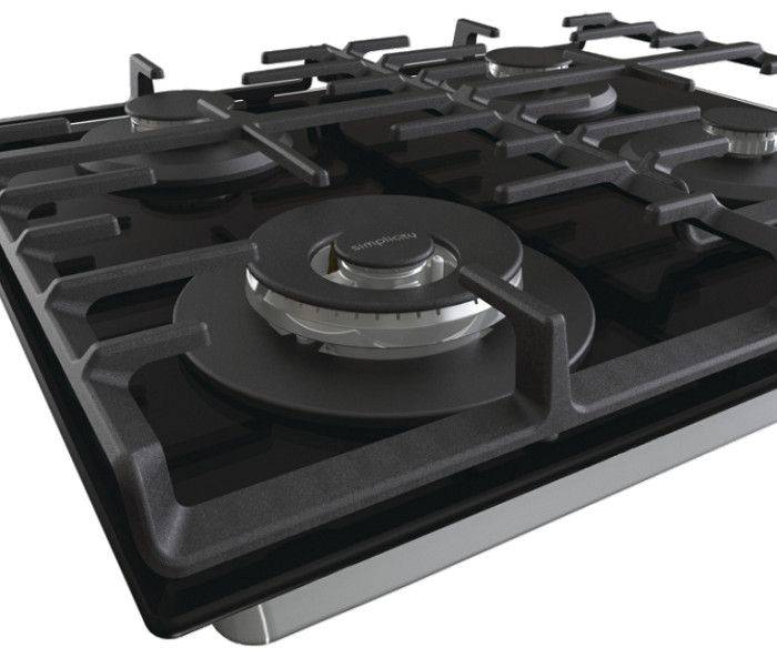 Vestavná plynová deska se 4 hořáky. Má malý, 2 normální a wok hořák. Dále jednoruční zapalování a litinové nosné mřížky.