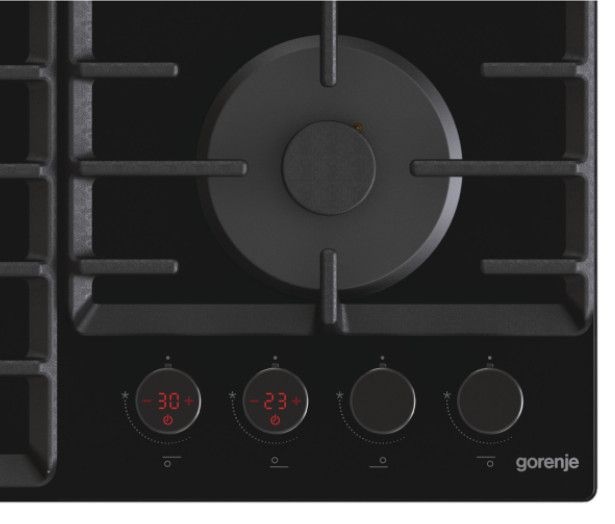 Ergonomicky navržený knoflík s vestavěným elektronickým časovým spínačem umožňuje nastavení doby vaření (až 99 minut). Po uplynutí nastavené doby se ozve akustický signál a plynový hořák se automaticky vypne.