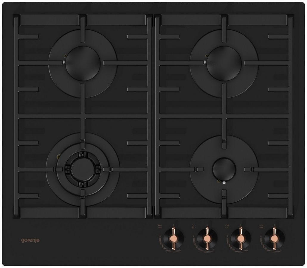Vestavná plynová deska se 4 hořáky. Má malý, 2 standardní a trojitý wok hořák. Dále jednoruční zapalování, litinové nosné mřížky a pojistky plamene hořáků.