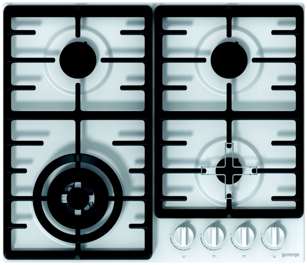 Vestavná plynová deska se 4 hořáky. Má malý, 2 standardní a miniwok hořák. Dále jednoruční zapalování, litinové nosné mřížky a pojistky plamene hořáků.