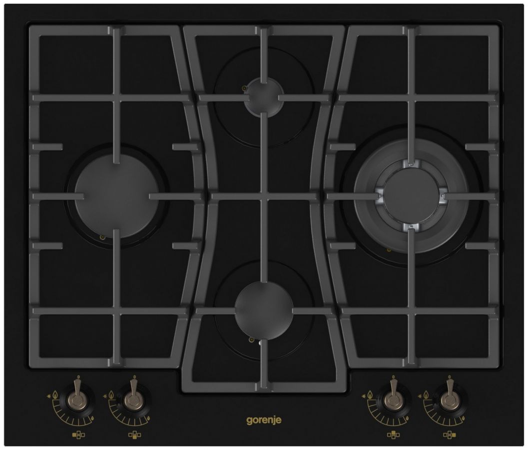 Vestavná plynová deska se 4 hořáky. Má malý, velký, standardní a trojitý wok hořák. Dále jednoruční zapalování, litinové nosné mřížky a pojistky plamene hořáků.