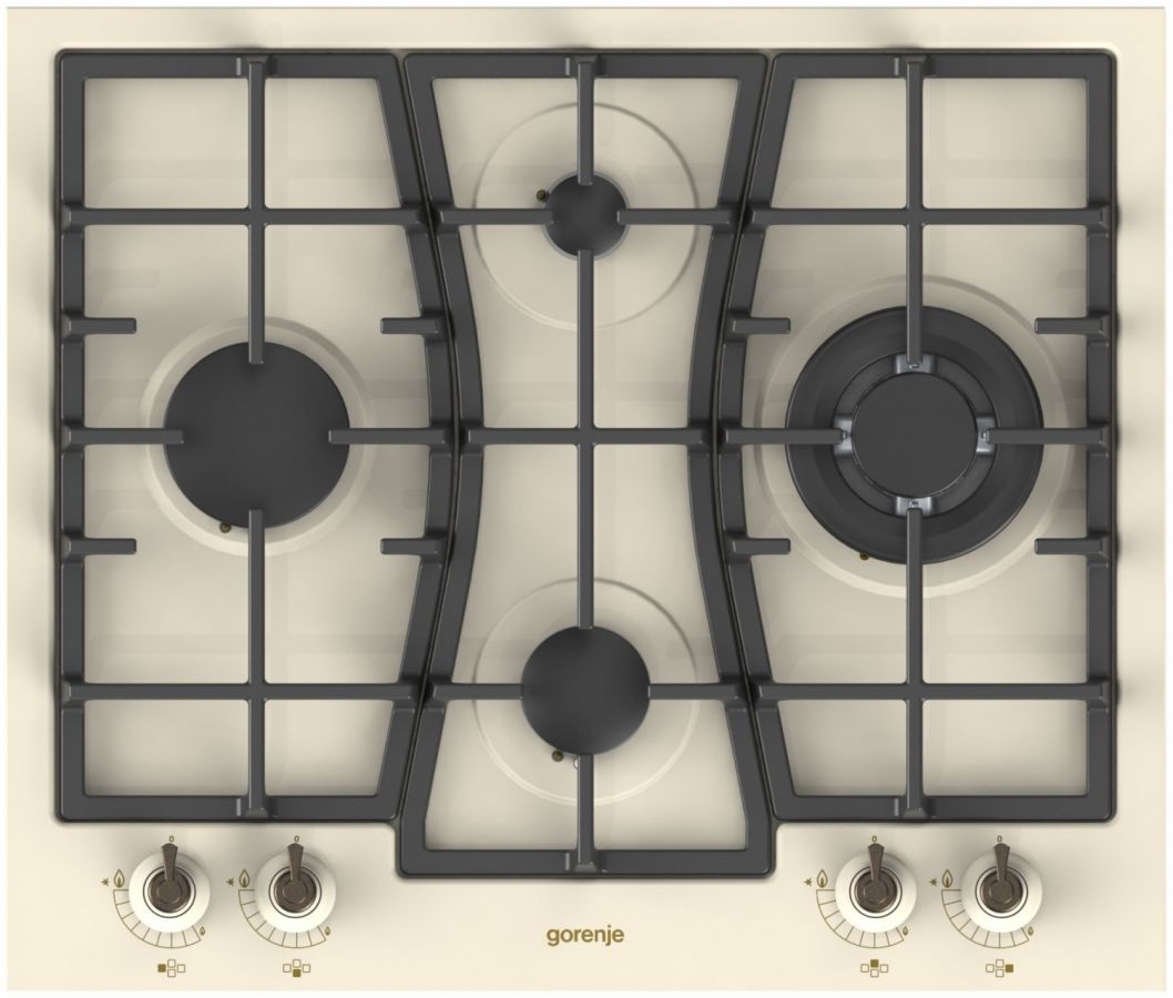 Vestavná plynová deska se 4 hořáky. Má malý, velký, standardní a trojitý wok hořák. Dále jednoruční zapalování, litinové nosné mřížky a pojistky plamene hořáků.