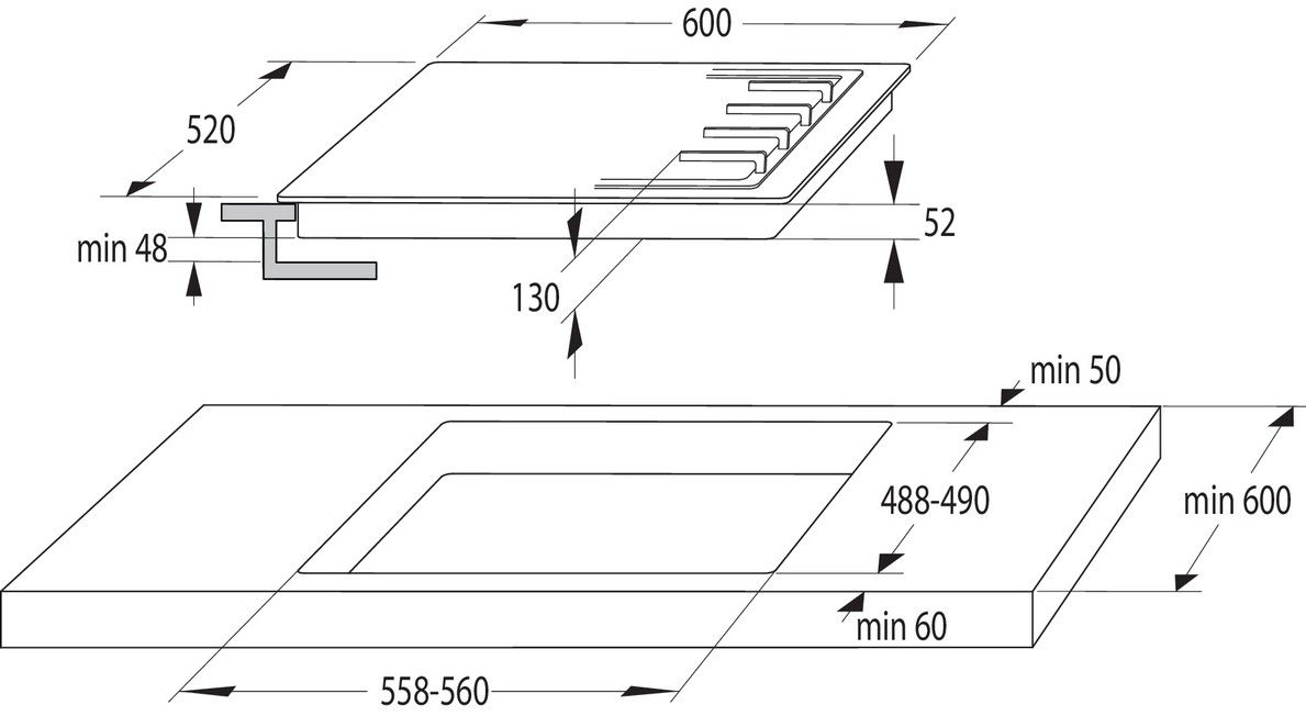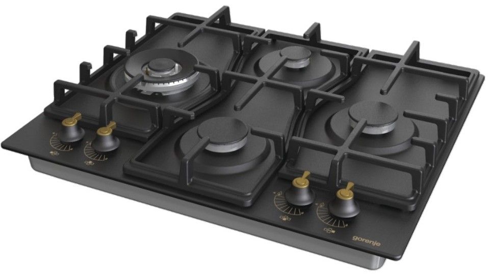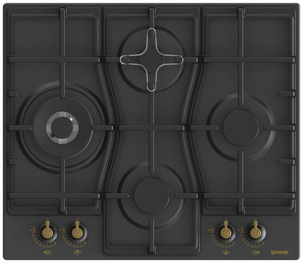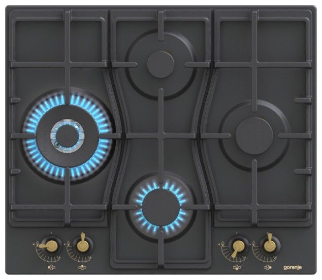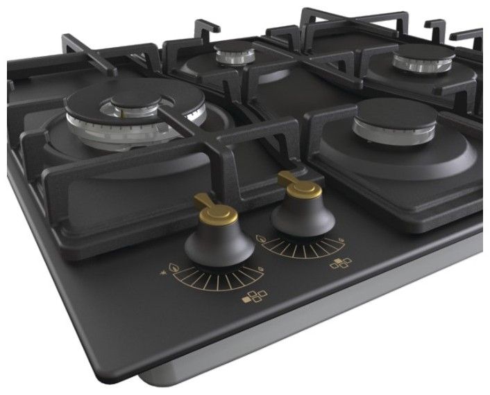 Vestavná plynová deska se 4 hořáky. Má malý, 2 standardní a dvojitý wok hořák. Dále jednoruční zapalování a litinové nosné mřížky.