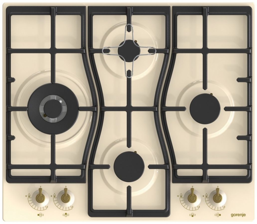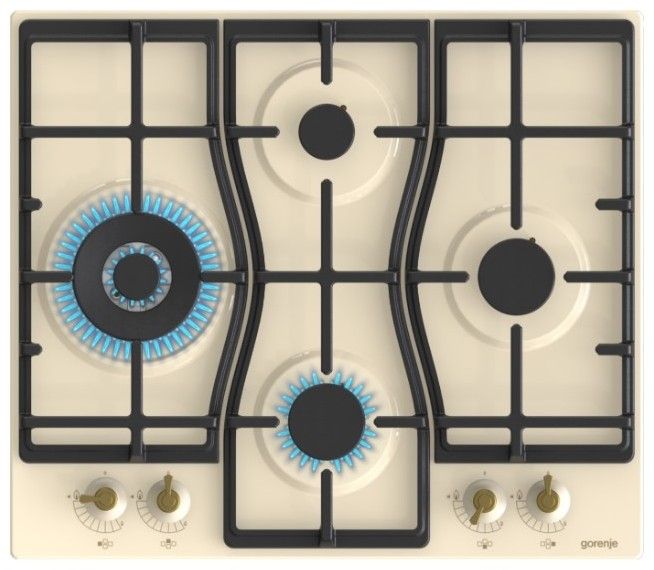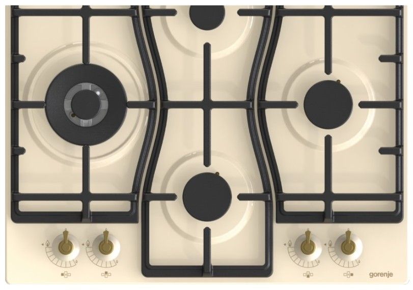 Vestavná plynová deska se 4 hořáky. Má malý, 2 standardní a dvojitý wok hořák. Dále jednoruční zapalování a litinové nosné mřížky.