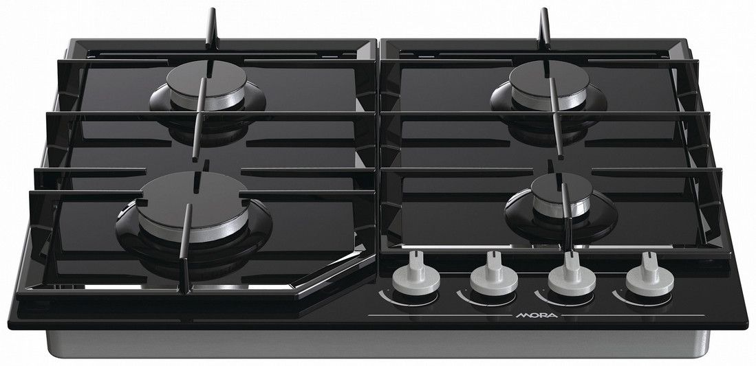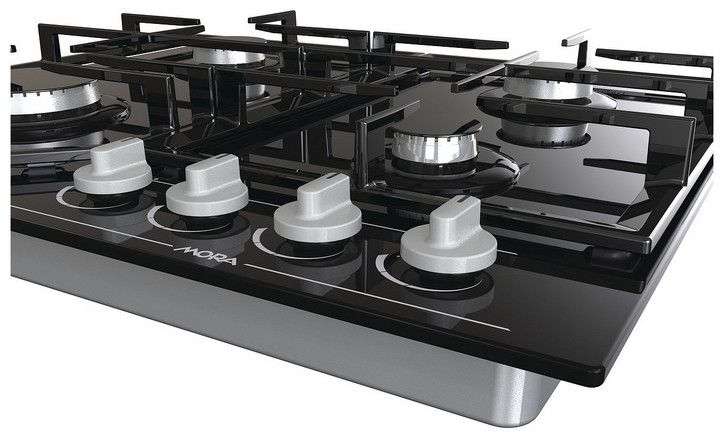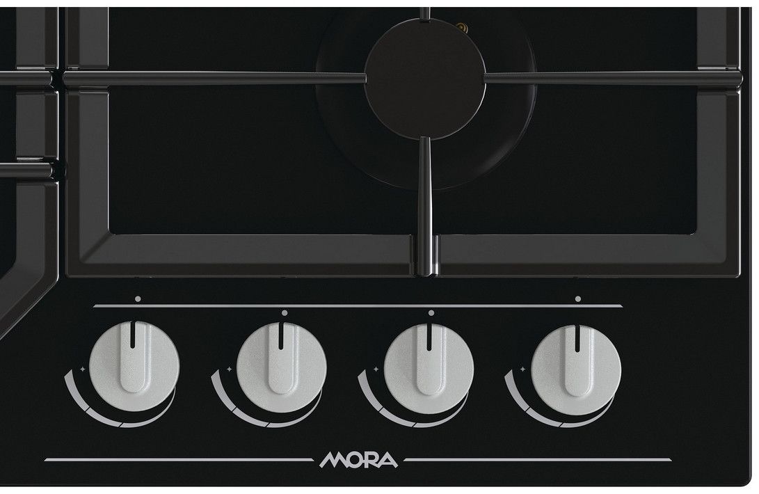Plynová varná deska MORA VDP 645 GB6 na černém tvrzeném skle splňuje nejvyšší nároky vaření na plynu a snadnou údržbu. Deska má 4 plynové hořáky osazené pojistkami STOP GAS, které Vám zajistí pocit bezpečí. Pojistka STOP GAS automaticky zastaví přívod plynu při náhodném zhasnutí plamene hořáku. Integrované elektrické zapalování komfortně uložené přímo v jednotlivých knoflících kohoutů je dnes již samozřejmostí. Hořáky jsou kryté dvoudílnou litinovou mřížkou, která zajistí bezpečný posun nádobí ve všech směrech.