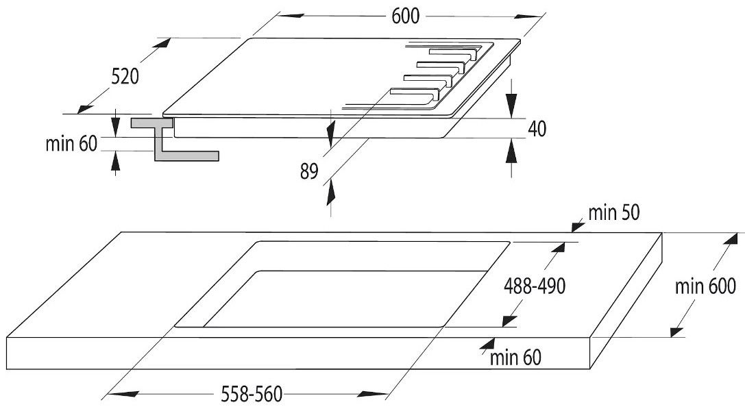 - 4 plynové hořáky s pojistkami Stop Gas (2x 7,35 cm, 1,75 kW, 1x 5,38 cm, 1 kW, 1x 10 cm, 3 kW) Elektrické zapalování hořáků v knoflících