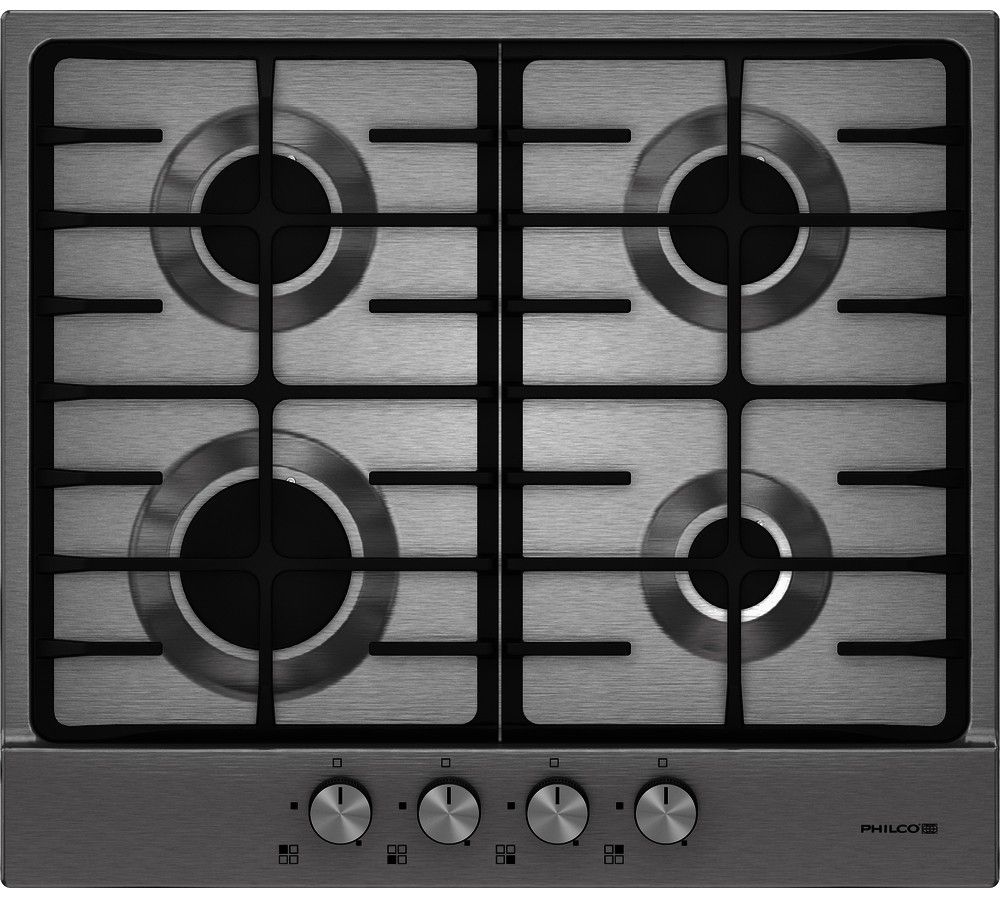Plynová varná deska Philco PGI 64 C z chirurgické nerezové oceli a s dvěma odolnými litinovými podpěrami. Čtyři plynové hořáky usnadňují a urychlují přípravu jakýchkoliv teplých pokrmů.