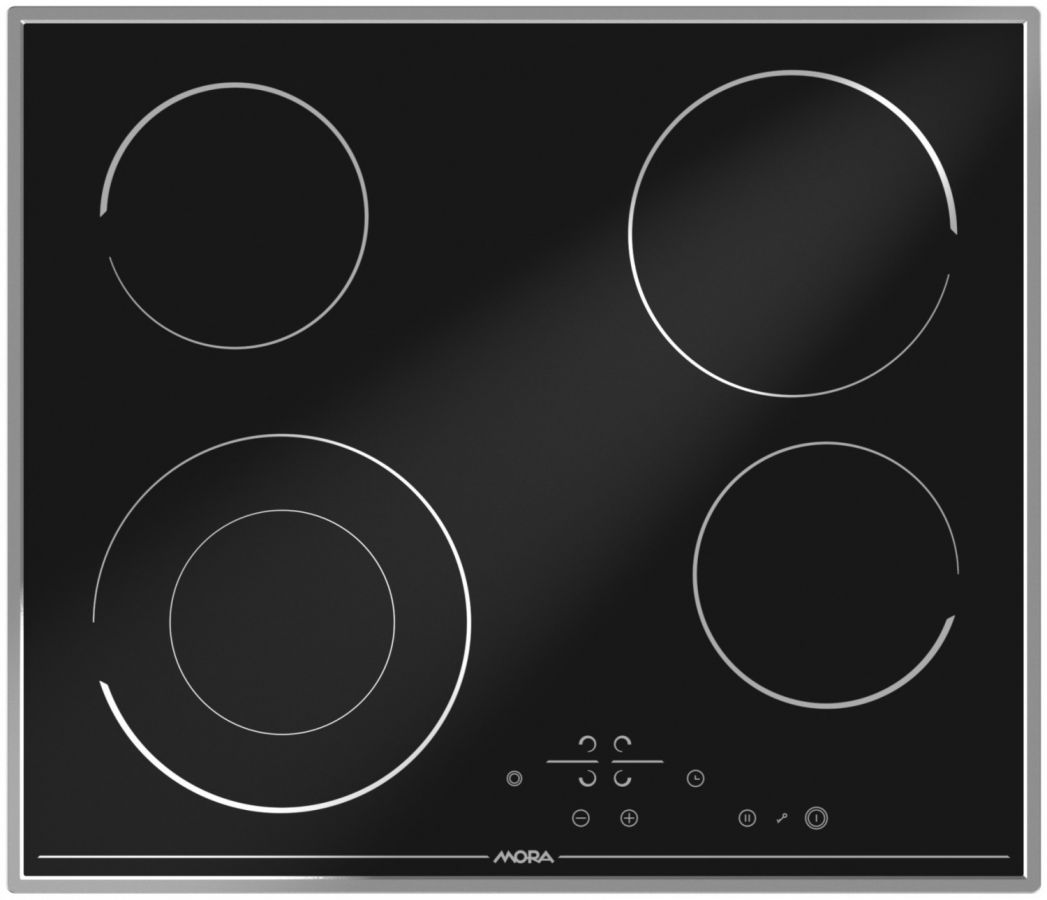 V černém provedení v praktickém nerezovém rámu. Rám není pouze designová záležitost, má svůj účel: chrání desku proti nechtěnému přetečení na pracovní desku a proti náhodnému pádu a případnému uštípnutí hrany. Deska disponuje 4 varnými zónami HI LIGHT, z nichž jedna je duální. S ukazatelem zbytkového tepla na desce víte která zóna je ještě horká a jste tak chráněni před nepříjemným popálením a jinými nehodami. Dotykové ovládání se zvukovým signálem bylo navrženo tak, aby zabíralo minimum místa, ale stále Vám poskytovalo dokonalý přehled o stavu vaření. Deska má mnoho užitečných funkcí jako STOP CONTROL (vypnutí desky při přetečení na ovládácí prvky), STAY WARM (funkce udrřování teploty), funkce TIMER (možnost časování varných zón) a v neposlední řadě i dětskou pojistku proti náhodnému spuštění desky. Díky uvedeným praktickým funkcím bude vaření zábavou. Sklokeramický povrche se velmi snadno čistí, stačí jej otřít a varná deska je opět čistá bez námahy a pohodlně.