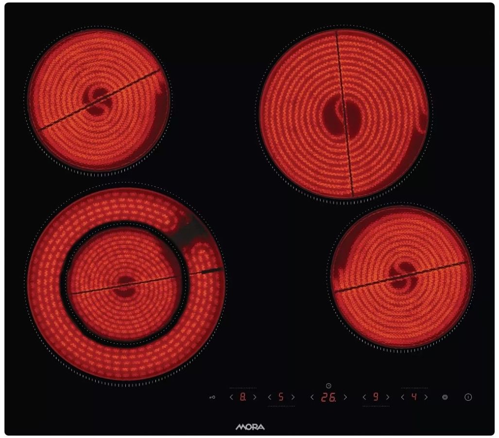Sklokeramická varná deska MORA VDST 632 C v černém provedení s praktickými broušenými hranami, díky čemuž ji lze jednoduše zabudovat i do roviny s pracovní deskou, disponuje 4 Hi-Light varnými zónami. S ukazatelem zbytkového tepla na desce víte, která zóna je ještě horká a jste tak chráněni před nepříjemným popálením a jinými nehodami. Taky můžete využít zbytkového tepla pro rozmrazovaní nebo ohřev uvařeného jídla. Dotykové ovládání s plynulou regulací výkonu se zvukovým signálem bylo navrženo tak, aby zabíralo minimum místa, ale stále Vám poskytovalo dokonalý přehled o stavu vaření. Sklokeramický povrch se velmi snadno čistí, stačí jej otřít a varná deska je opět čistá bez námahy a pohodlně. Funkce KeyLock je vytvořena speciálně pro rodiny s malými dětmi. Nechat děti v kuchyni bez dozoru nebylo nikdy bezpečnější, protože tato možnost jim zamezuje zapnout varní desku. Funkce Timer vám umožní nastavit dobu vaření až na 99 minut. Pokud znáte optimální dobu vaření pro konkrétní jídlo, můžete nastavit časovač a varná deska se po uplynutí nastavené doby automaticky vypne. Pípnutí signalizuje, že je jídlo připravené.
